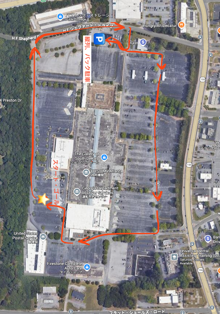 ちなみに僕はアトランタの東部 Decatur で受験しました。ちゃんと 同乗者が必要でしたが、採点は甘め で満点取りました。